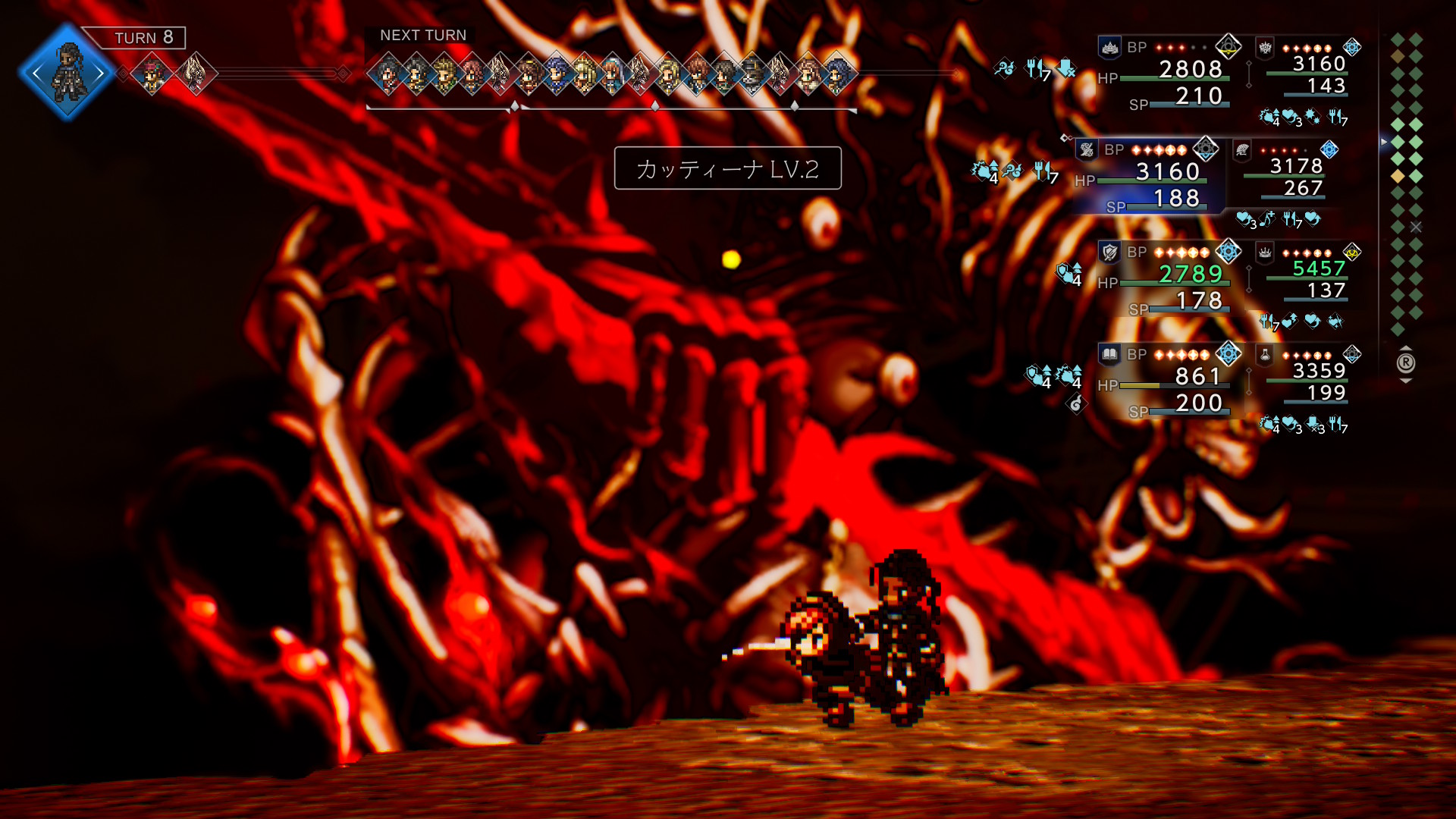 キーファにもしっかり見せ場を持ってくるようなラスボスの演出になってたところがうまいなと思いましたね。正直言ってパーティメンバーが強くなりすぎてたのかそもそもバランスがぬるめだったのか、ぶっちゃけ言って負ける気は全くしませんでしたが、それでもキーファが真空火炎切りを放った時にはやるじゃんと思いました。